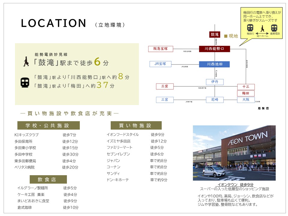 能勢電鉄「鼓滝」駅 徒歩6分イオンタウン 徒歩9分